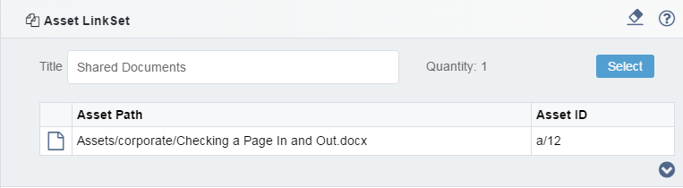 The addition of the asset system brings new field types to work with. First off, when you upgrade to Ingeniux CMS 10.x, your Document, Image, and Media fields are converted to Asset fields. Fields to select multiple assets at once have been introduced, which include: Asset Link Set, Asset Navigation, and Asset Taxonomy Navigation.